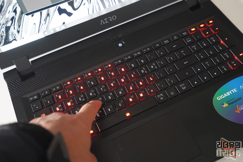 기가바이트 AERO 17 HDR YB 키보드 부분도 눈길을 사로 잡습니다. 최신 백라이트 기술인 RGB Fusion 2.0이 적용되어 화려한 디자인 매력을 느낄 수 있고 RGB는 다양한 커스터 마이징을 지원해 취향 따라 다양한 변화를 줄 수 있습니다.