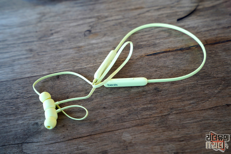 비츠 플렉스 (beats Flex) 소재는 내구성이 뛰어난 니티놀(Nitinol) 소재로 되어 있고 Flex-Form 케이블을 적용해 가볍고 편안한 사용을 할 수 있습니다. 무게는 18.6g 입니다.