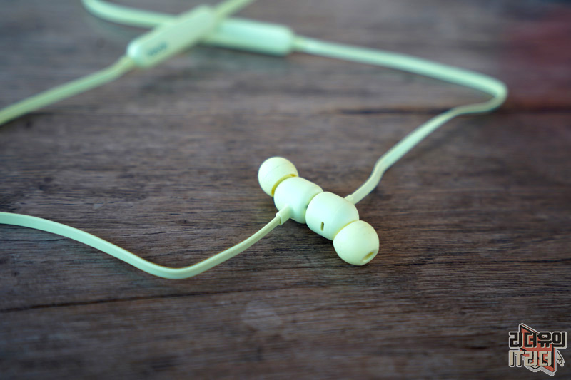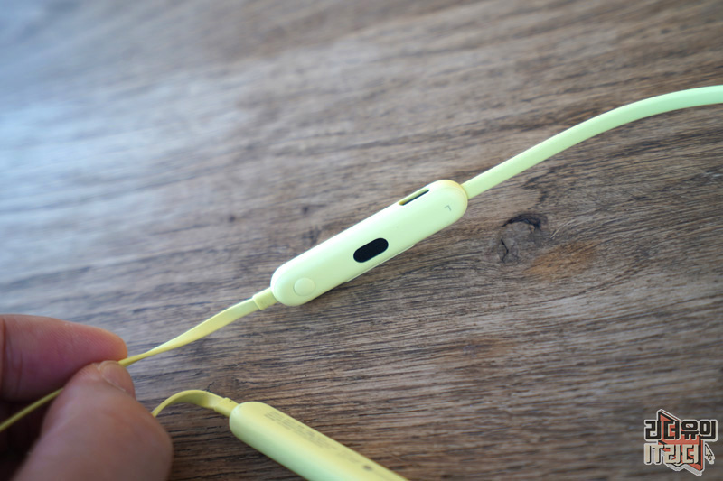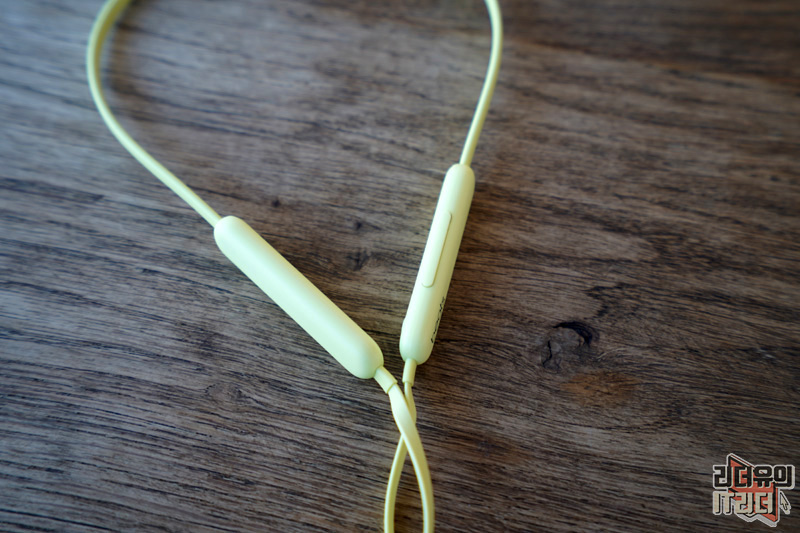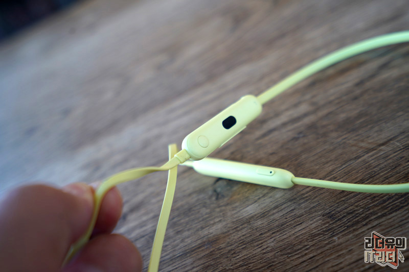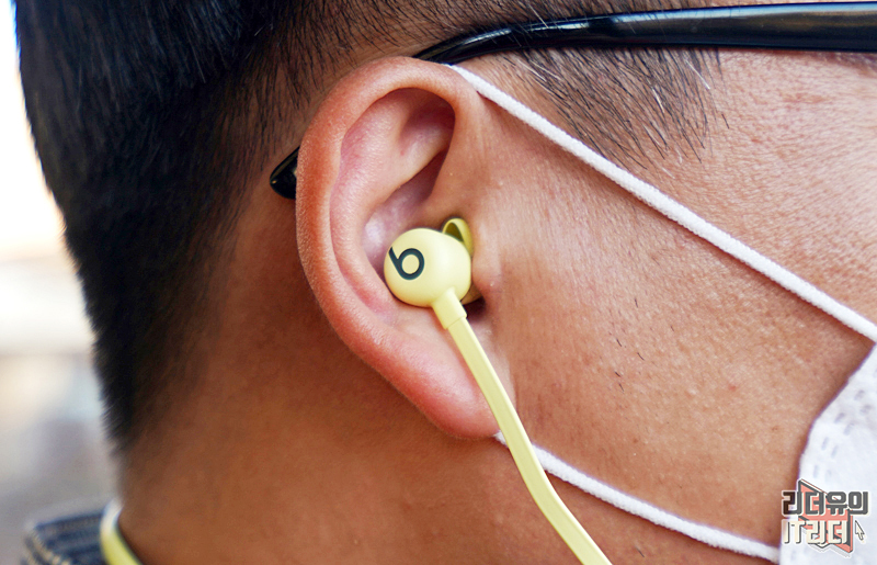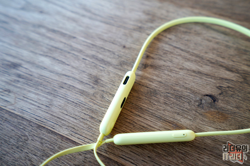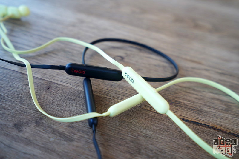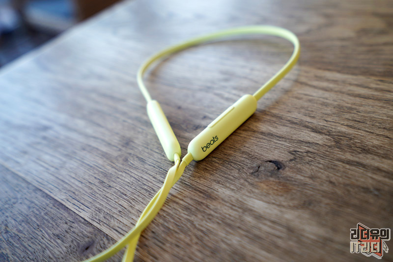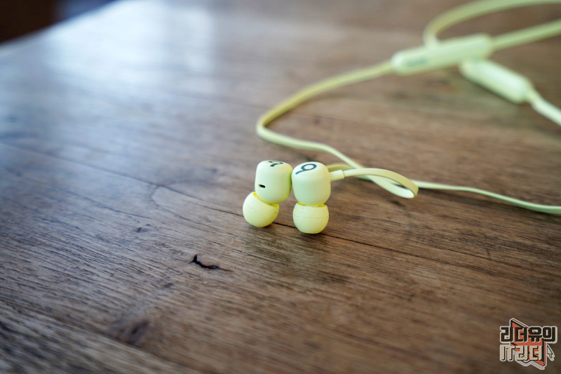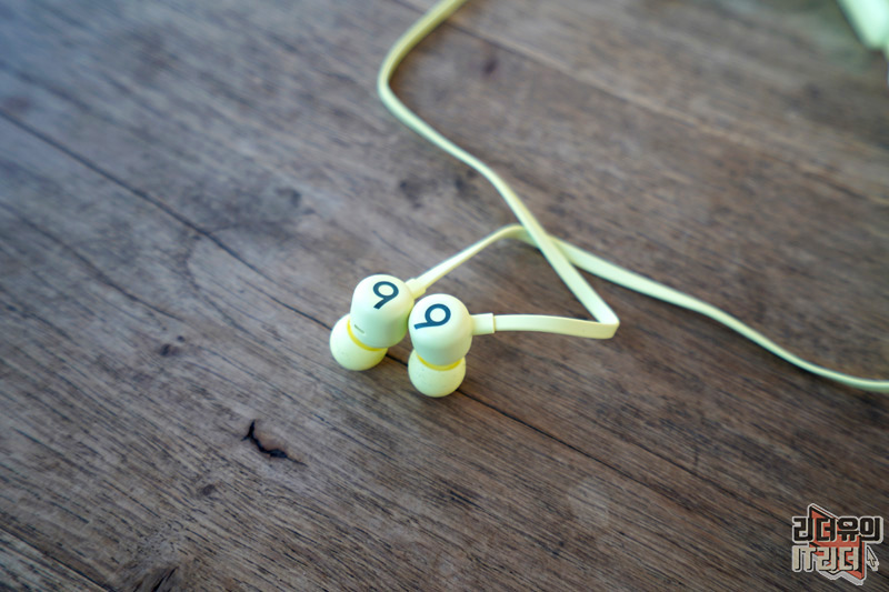 넥밴드 무선 이어폰이기 때문에 양쪽에 무게 중심을 잡아주는 본체가 있습니다. 시트러스 옐로우, 비츠 블랙 각각의 색상에 맞게 beats 로고가 새겨져 있습니다.