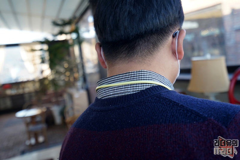 자석으로 찰칵 달라 붙는 구조라 목에 걸었을때 안정된 휴대를 할 수 있습니다. 뿐만 아니라 자석으로 붙였을 시 자동으로 페어링이 헤제되고 음악도 정지가 되니 전원을 켜고 끄고 할 필요가 없습니다.