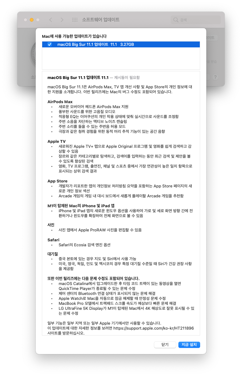 애플 에어팟 맥스(AirPods Max)가 출시되었고 애플 피트니스+ (apple Fitness+) 서비스가 시작되면서 아이폰, 아이패드, 애플워치, 맥까지 대대적인 업데이트가 한국 시간으로 12월 15일 올라왔습니다. 애플워치는 따로 확인해 봤으니 해당 글 ( www.leaderyou.co.kr/7102 )을 참고하시고 오늘은 아이폰 iOS 14.3 , 아이패드 iPadOS 14.3 맥 macOS Big Sur 11.1 달라진점을 확인해 보겠습니다.