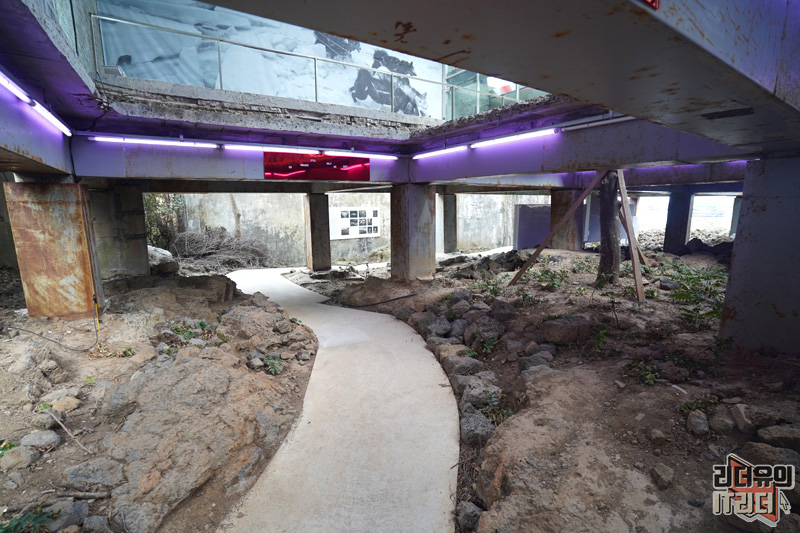 왼쪽을 보면 내려가는 계단이 보입니다. 그리고 전시장 가는길 이라는 안내표시가 있습니다.