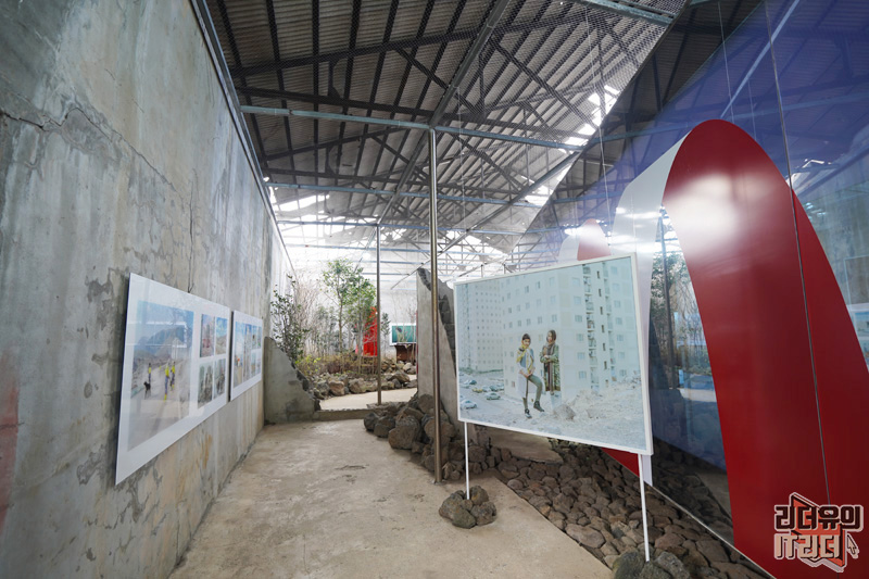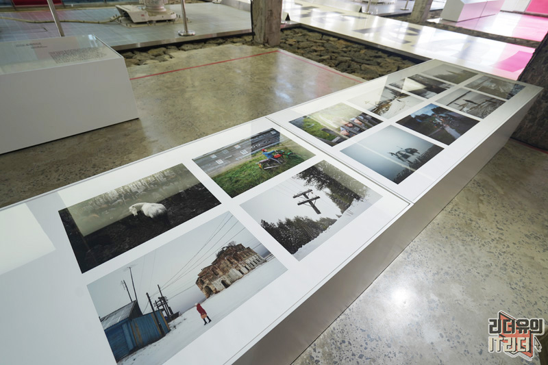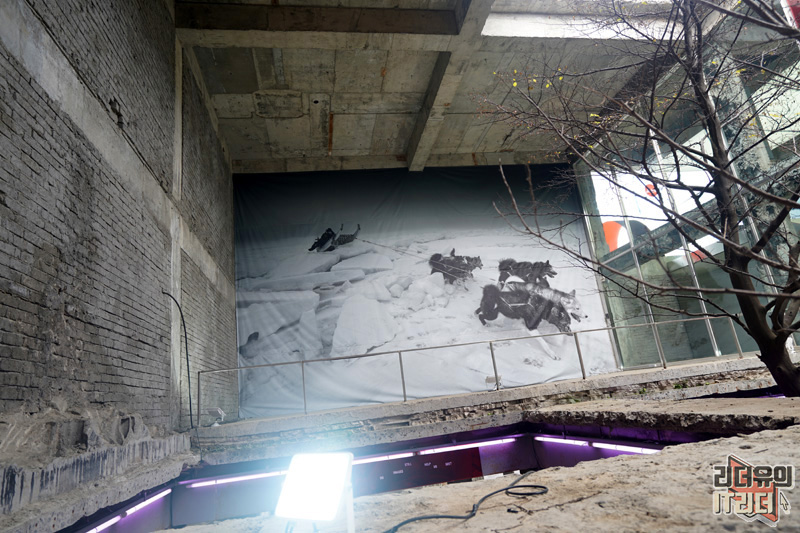 넓게 펼쳐진 이색적인 오라이카 라이카 카메라 사진전 내부 모습입니다. 날 것의 느낌과 엔틱한 분위기가 어우러져 라이카 사진전이 전하고자 하는 메시지를 생동감있게 전달하고 있습니다.