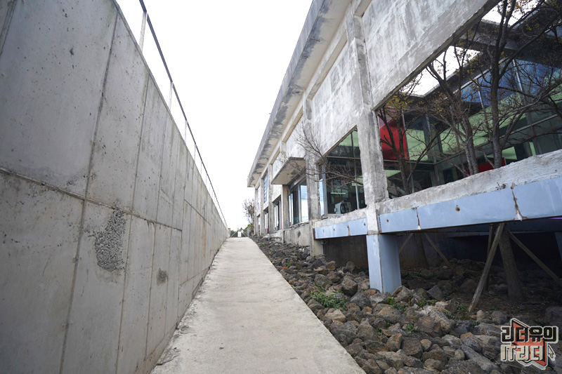 길을 따라 나오면 뒤에서 보는 제주 공백 카페의 모습도 볼 수 있습니다. 1층, 2층이 통유리로 된 멋진 건물입니다.