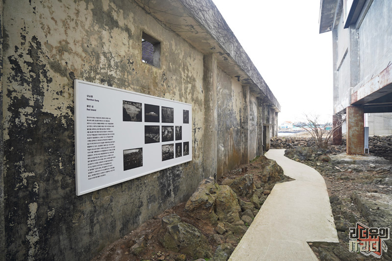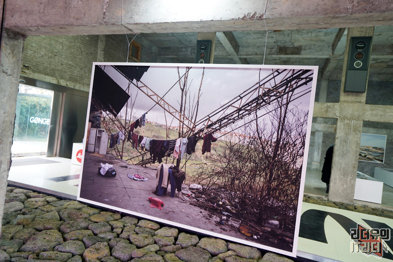 바다 옆 산책로를 따라 걸으면서 전시공간으로 가게 되어 있습니다. 다이렉트로 들어가게 할 수도 있겠지만 자연스럽게 자연과 하나되는 전시공간을 느끼게 하고 있습니다. 인간과 환경의 관계를 담은 사진전이라는 의미를 이런 이동 경로로 표현하는 것 같습니다.
