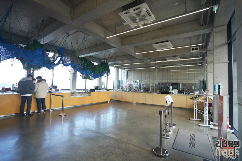 건물 안으로 들어서면 1층에는 카페로 운영되고 있습니다. 커피, 빵을 주문을 하는 공간인데요. 탁트인 전망이 예술입니다.