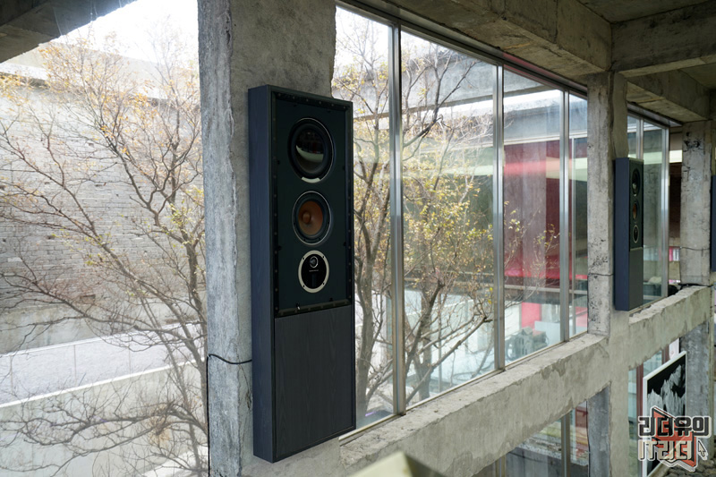 그리고 위를 보면 스피커들이 촘촘히 달려 있는데요. 소리와 함께 눈과 귀를 사로 잡는 색다른 전시 공간을 느낄 수 있습니다.