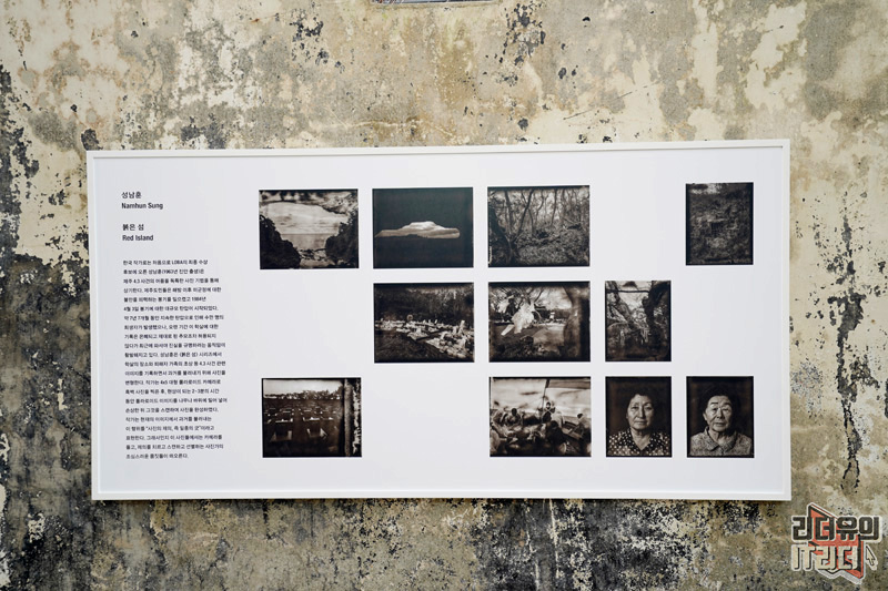 성남훈의 '붉은 섬' 사진입니다. 한국 작가로는 처음으로 LOBA의 최종 후보에 올랐는데요. 제주 4.3 사건의 아픔을 독특한 사진 기법을 통해 상기하고 있습니다. 제주 4.3 사건은 제주도민들이 해방 이후 미군정에 대한 불만을 피력하는 봉기를 일으켰고 1984년 4월 3일 봉기에 대한 대규모 탄압이 시작되었습니다. 약 7년 7개월 동안 지속한 탄압으로 인해 수만 명의 회생자가 발생했습니다. 하지만 오랜 기간 이 학살에 대한 기록은 은폐되고 제대로 된 추모조차 허용되지 않았는데 최근에 와서야 진실을 규명하려는 움직임이 활발해 지고 있습니다.