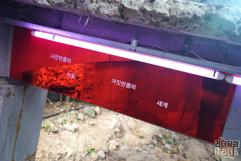 중간에 이런 메시지가 눈에 띄네요. 사진만큼의 거짓, 거짓만큼의 세계. 사진에 대한 의미를 다시 돌아보게 하는 것 같습니다.
