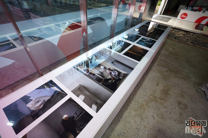 넓게 펼쳐진 이색적인 오라이카 라이카 카메라 사진전 내부 모습입니다. 날 것의 느낌과 엔틱한 분위기가 어우러져 라이카 사진전이 전하고자 하는 메시지를 생동감있게 전달하고 있습니다.