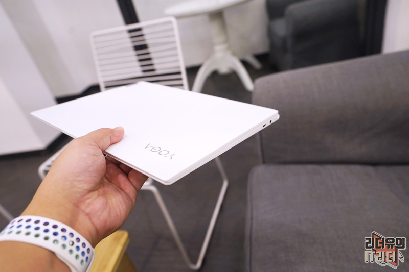 레노버 요가 슬림 7i 카본은 깨끗한 문 화이트 색상으로 되어 있습니다. 화사한 컬러가 매력적이고 YOGA 로고가 포인트로 들어가 세련된 디자인을 느낄 수 있습니다.