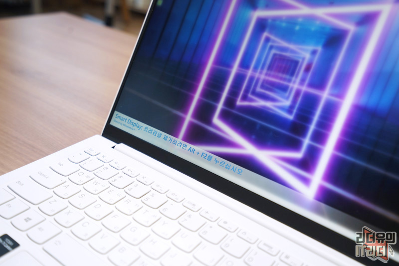 디스플레이를 오픈하면 13.3인치의 깨끗한 화면을 볼 수 있습니다. 그리고 무엇보다 배젤을 최소화해 화면 대 바디 비율이 91%나 됩니다.