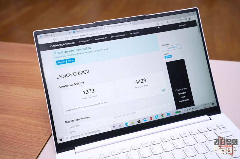RAM은 8GB 4267MHz LPDDR4x가 탑재되어 있고 저장공간은 256GB M.2 NVMe SSD 가 들어갔습니다. 그럼 벤치마크 점수가 궁금하시죠?