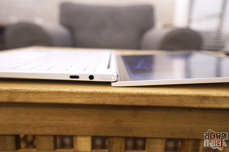 반대쪽에는 USB 3.2 Type-C 단자와 오디오 콤보잭 그리고 전원 버튼이 있습니다.