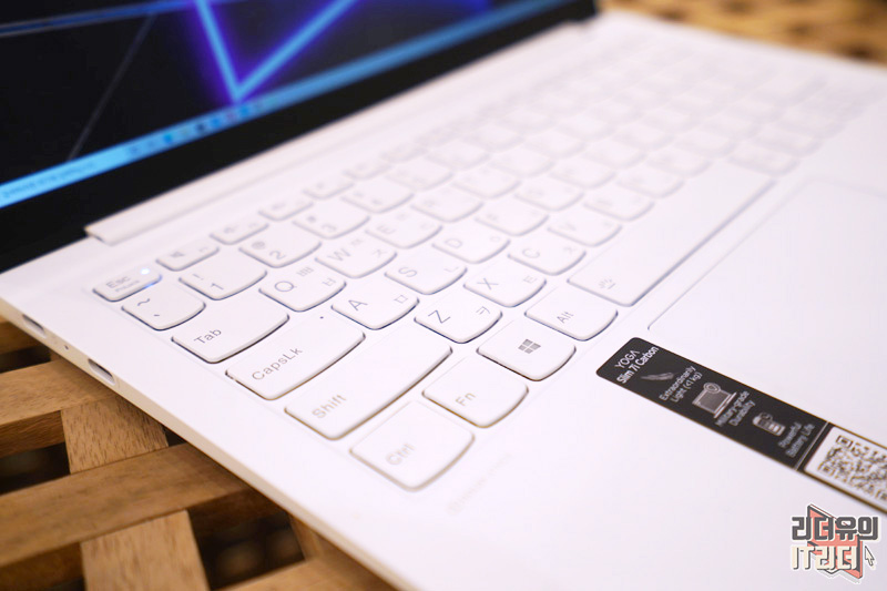 레노버 요가 슬림 7i 카본은 인체공학적 키보드가 적용되었습니다. 단 1.0mm만 움직이게 설계되어 있는데요. 키감도 너무나 편하게 되어 있어 입력시 만족도가 높습니다. 그리고 조용한 키보드라 독서실에서도 사용이 가능합니다. 키보드 기술력은 확실히 레노버가 좋습니다.
