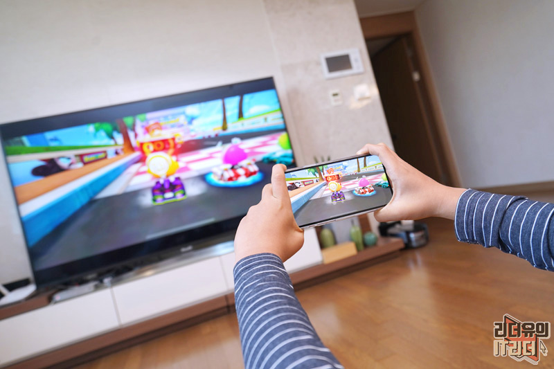 카트라이더 게임을 LG 75인치 TV에서 볼 수 있습니다.