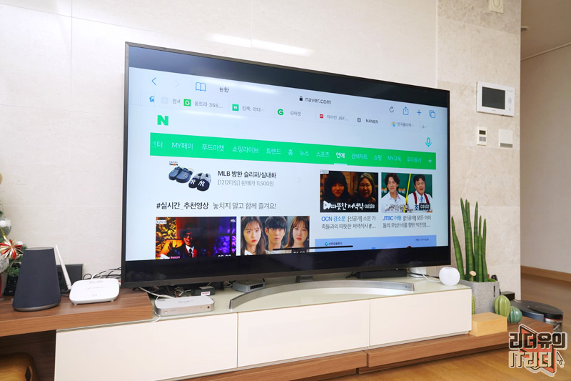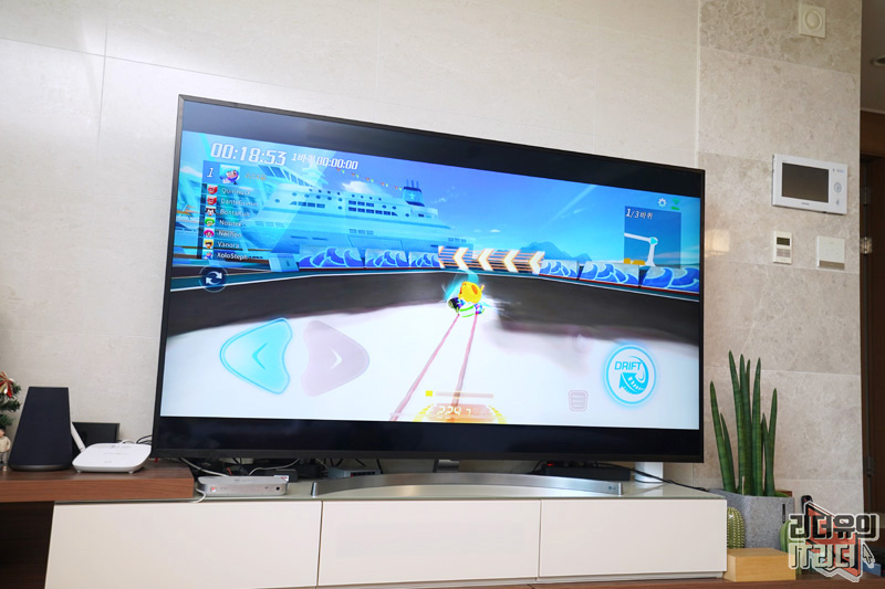 카트라이더 게임을 LG 75인치 TV에서 볼 수 있습니다.
