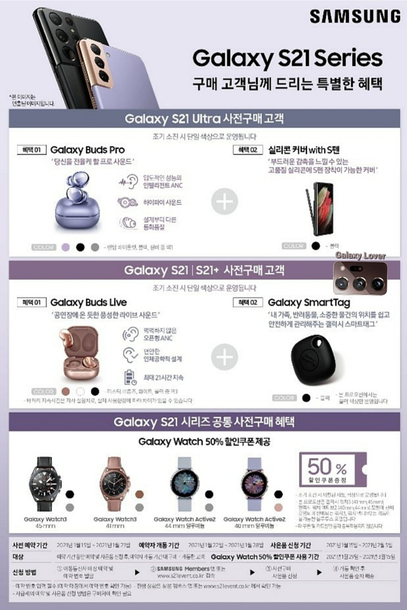 갤럭시S21 언팩 앞두고 갤럭시S21 사전예약 사은품이 유출되었습니다. 사전 구매 혜택으로 오늘 공개될 내용을 미리 확인할 수 있습니다.