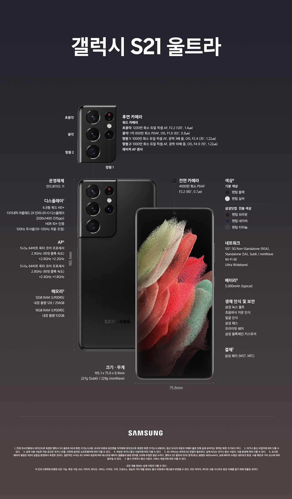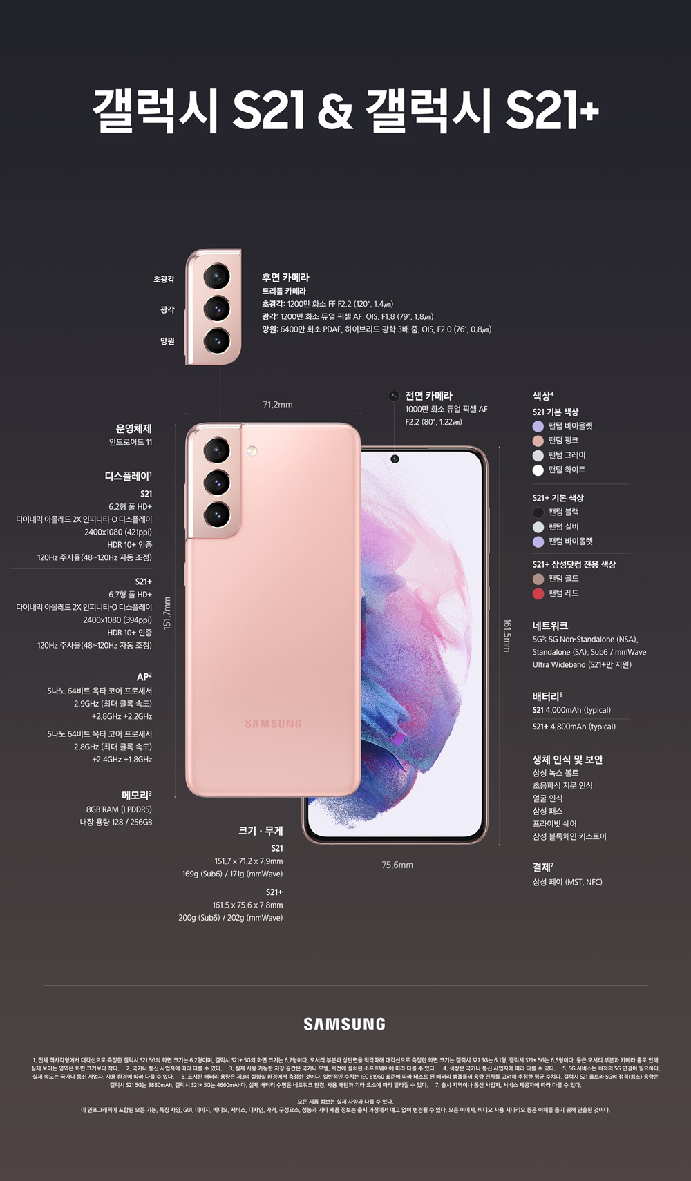 갤럭시S21 3종 스펙 확인! 인포그래픽