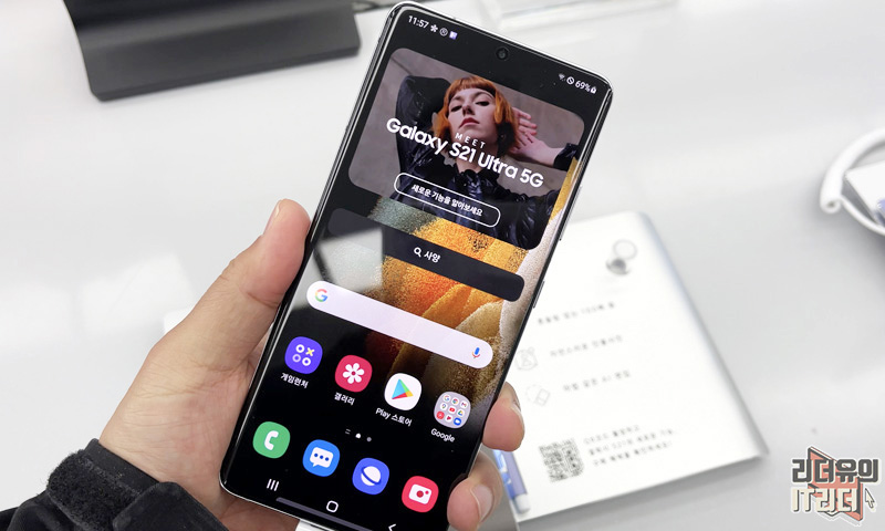 갤럭시S21 울트라는 엣지 디스플레이 입니다. 우아한 디자인 매력을 가진 디스플레이라 전체적으로 프리미엄 디자인의 가치를 잘 보여주고 있습니다.