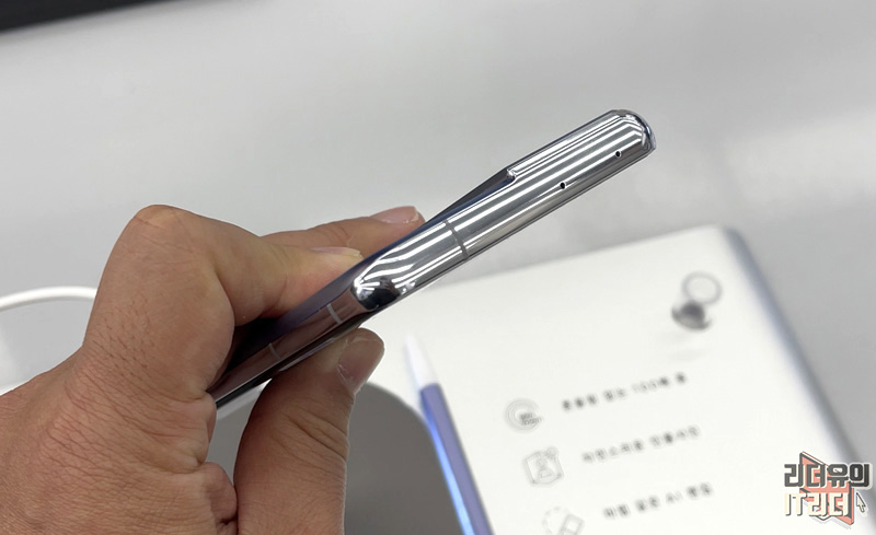 그리고 카메라 영역의 경우는 재질이 다릅니다. 뒷면은 유리 재질이라 할 수 있고 카메라 영역은 메탈 소재라 서로 다른 소재가 조합되어 있다고 보시면 됩니다.