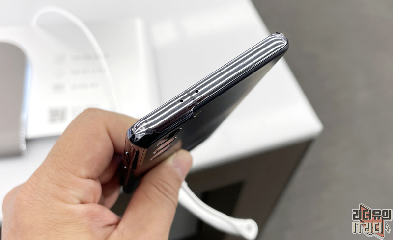 독특한 디자인 포인트는 카메라 영역과 이어지는 사이드 라인입니다. 테두리에서 카메라 영역까지 하나가 되는 디자인 컨셉을 느낄 수 있습니다. 그리고 테두리 라인은 유광으로 처리했습니다.