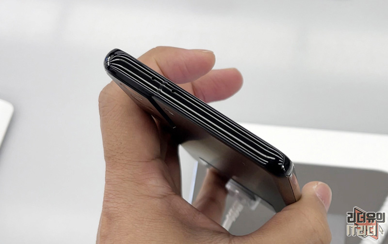 카메라 영역을 보면 테두리 라인에서 침범하는 디자인을 적용했습니다. 지그재그로 섞이는 디자인 포인트를 느낄 수 있습니다.