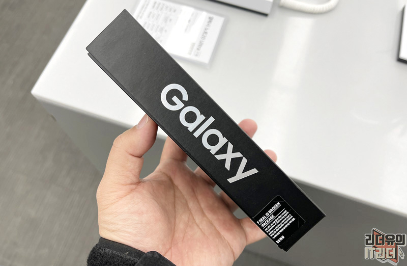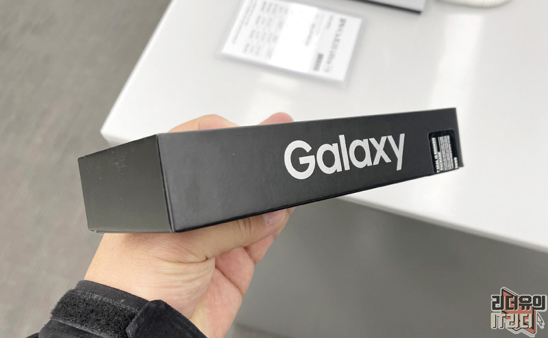 갤럭시S21 울트라 패키지 입니다. 가운데 S가 있고 뒤쪽으로 21 숫자가 크게 들어가 있습니다.