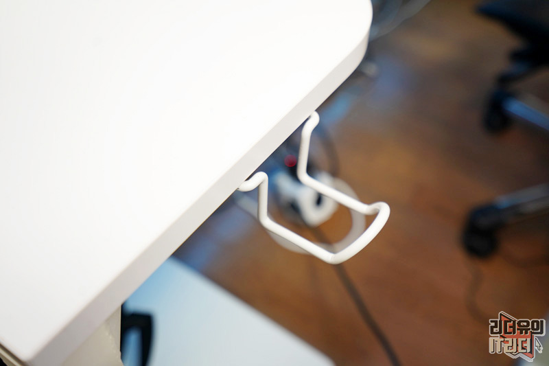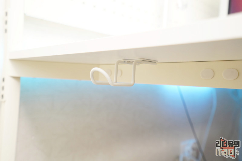 책상 뒤쪽에는 홈이 있어 케이블을 아래쪽으로 쉽게 빼낼 수 있게 되어 있습니다. 추가 액세서리로 멀티탭함이 있으니 필요에 따라 선택하시면 됩니다.