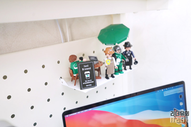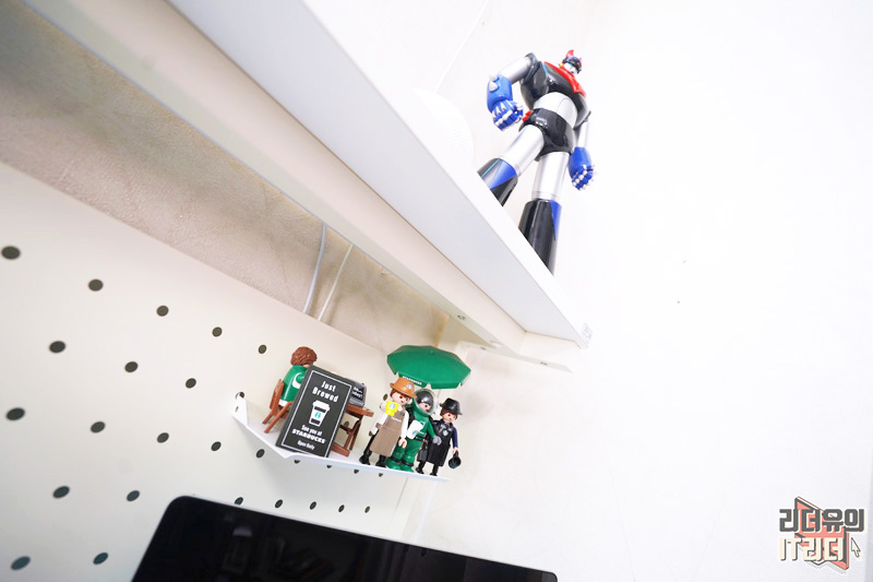 타공판 선반 액세서리를 구입해서 피규어를 거치한 모습입니다. 윗 선반에도 놓을 수 있지만 제 시선에서 보면 좋을 것 같아서 선반 액세서리로 꾸며 봤습니다. 참고로 타공 구멍 간격은 4cm 입니다.