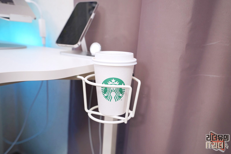 209 애비뉴 제로스테이션 타워는 여러가지 액세서리를 연결할 수 있는 센스있는 구성을 준비했습니다. 별도 구매이니 각자 필요한 액세서리를 선택하면 됩니다. 위 사진은 컵홀더 액세서리 입니다. 일하다가 컵쳐서 음료나 커피 쏟은적 있으시죠? 얘는 컵홀더가 있으니 안심하고 사용할 수 있습니다. 그리고 책상 위도 지저분해지지 않아서 좋습니다.