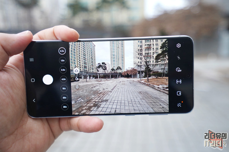 갤럭시S21 플러스는 30배 디지털줌을 지원합니다. 제대로만 된다면 정말 놀라운 기능이지만 사실상 30배로 확대만 될 뿐 화질이 너무 떨어져서 실사용 하기에는 힘든 수준입니다. 이런 것도 가능해요. 정도라고 보면 될 것 같습니다.