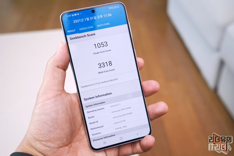 갤럭시S21 플러스 성능도 정말 좋습니다. 긱벤치5 점수는 싱글코어 1053점, 멀티코어 3318점 입니다. 이미 스마트폰은 성능이 상향평준화되어 일반적인 사용씬에서는 이전과 속도 차이를 느끼기는 힘들지만 현재 최고의 안드로이드 스마트폰임에는 틀림없는 사실입니다. 빠릿빠릿한 사용감이 예술입니다.