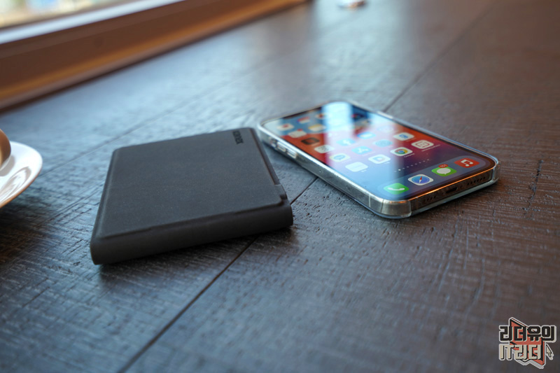 아이폰12 프로 맥스와 사이즈를 보시면 거의 차이가 안나는 걸 알 수 있습니다. 그만큼 휴대성에서 장점을 가진 KANEX 접이식 키보드입니다.