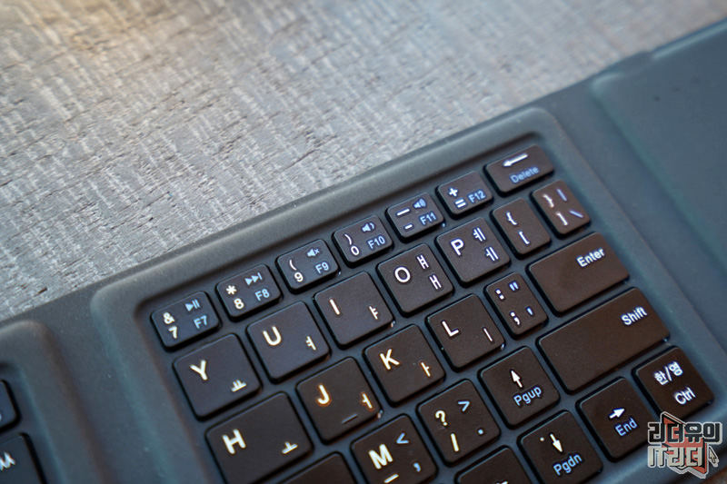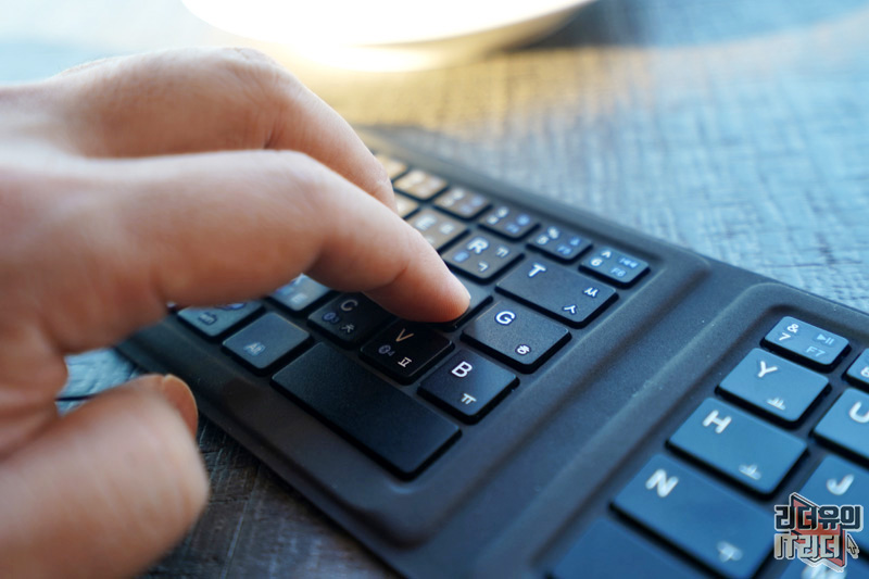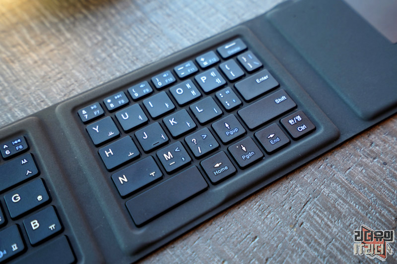 오른쪽 키보드 영역입니다. 여기서 살짝 불편한 부분은 점을 찍는 영역이 안쪽으로 들어와 있어 일반적인 키보드 입력과는 다르게 신경써서 눌러 줘야 합니다. 그런데 점을 그렇게 많이 찍을 일은 없으니 적응하기 나름이고 접이식 키보드라는 점을 고려했을때 충분히 이해가 되는 키 입력입니다.