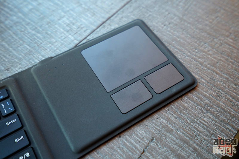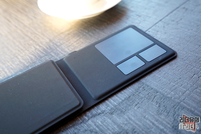 한쪽 커버를 열면 트랙패드를 만날 수 있습니다. KANEX 접이식 키보드의 가장 차별화된 요소인데요. 아래는 마우스의 오른쪽 왼쪽 버튼으로 사용되어 컨트롤 하기 좋습니다.