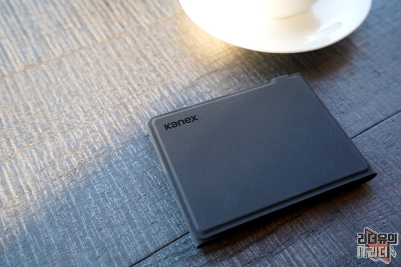 상단에는 KANEX 이니셜이 새겨져 있습니다. 그리고 재질은 보들보들한 느낌의 폴리우레탄 입니다. 스크래치에 강한 특징을 가지고 있습니다.