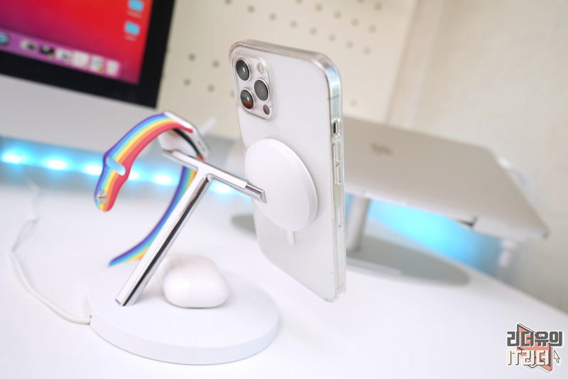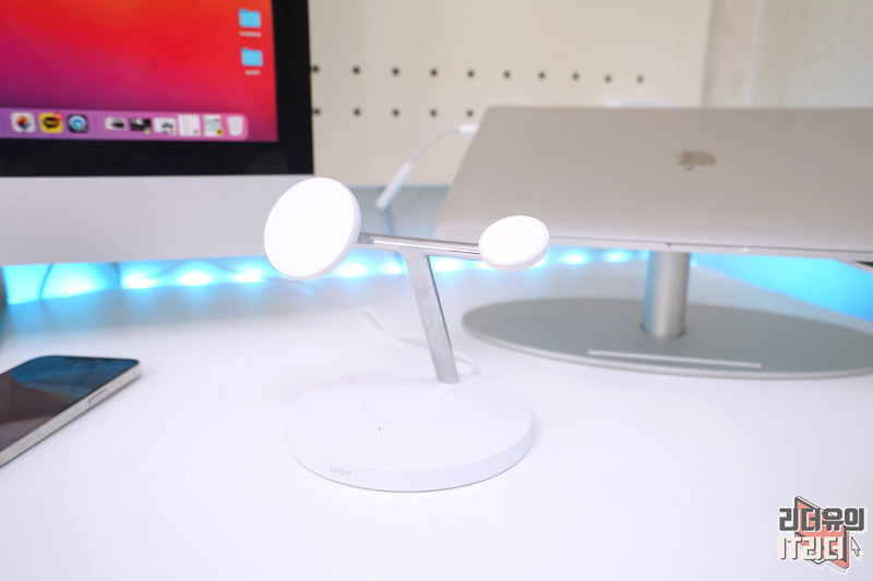 벨킨 3in1 맥세이프 충전기 거치 모습