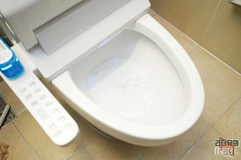 도기 버블 세정을 사용하면 세정액에 라이트가 들어오면서 사용되고 있음을 보여줍니다.