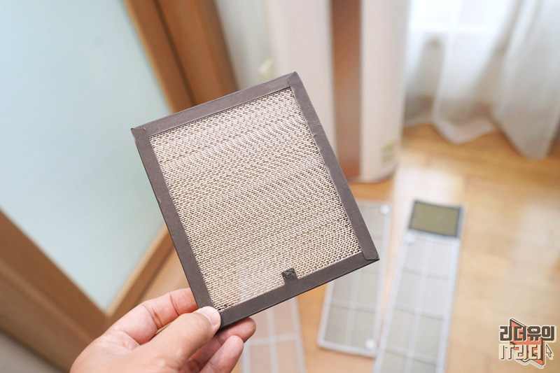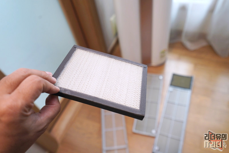 내부 필터를 분리하면 극세필터만 남습니다. 필터를 분리해 보면 먼지가 많이 묻어 있는 걸 알 수 있습니다. 이건 샤워기로 씻어주고 말리면 됩니다.