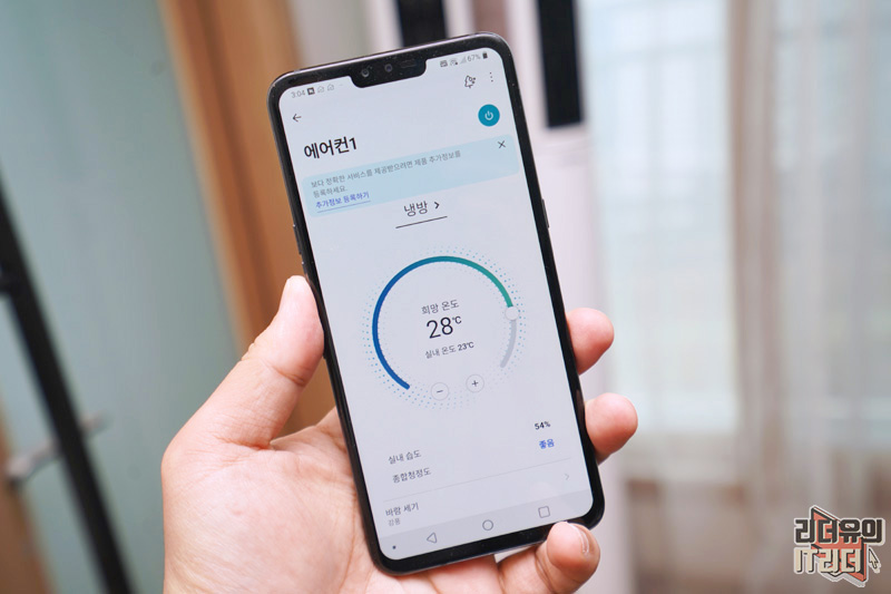 LG 휘센 에어컨은 디스플레이가 있어 배터리 상태를 쉽게 확인할 수 있습니다.