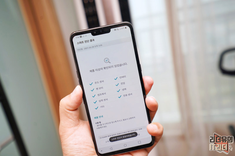 스마트 진단을 하면 온도센서, 인버터, 팬 모터, 전압, 컴프레서, 냉매, 압력 센서, 전류 센서 다 점검을 하게 됩니다.