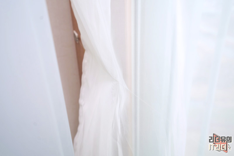 그때는 이렇게 커튼을 완전히 쳐서 사용하면 좋습니다. 하지만 빛이 많이 들어오는 경우라면 저처럼 하시는 것도 방법입니다.