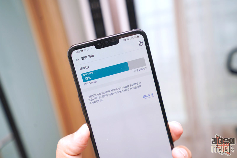 필터 잔여량이 그래프로 나오기 때문에 사용자가 특별히 신경쓰지 않아도 필터 교체 시점을 알 수 있습니다.