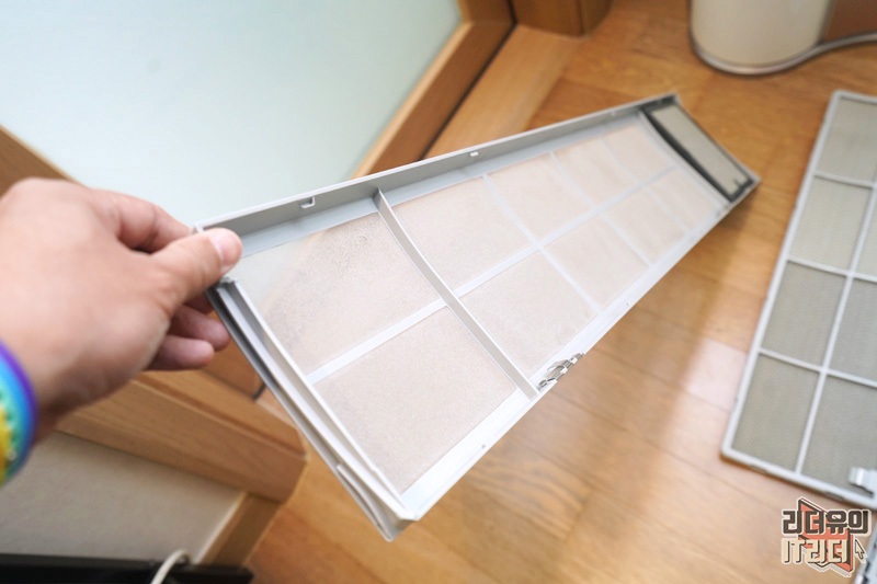 1차 먼지를 걸러주는 부분이니 필터를 분리해서 정기적으로 관리해 주면 공기청정 기능을 제대로 사용할 수 있습니다.
