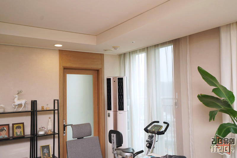 저같은 경우는 에어컨 뒤쪽에 커튼이 빨려가지 않도록 줄을 쳐 놓았습니다.