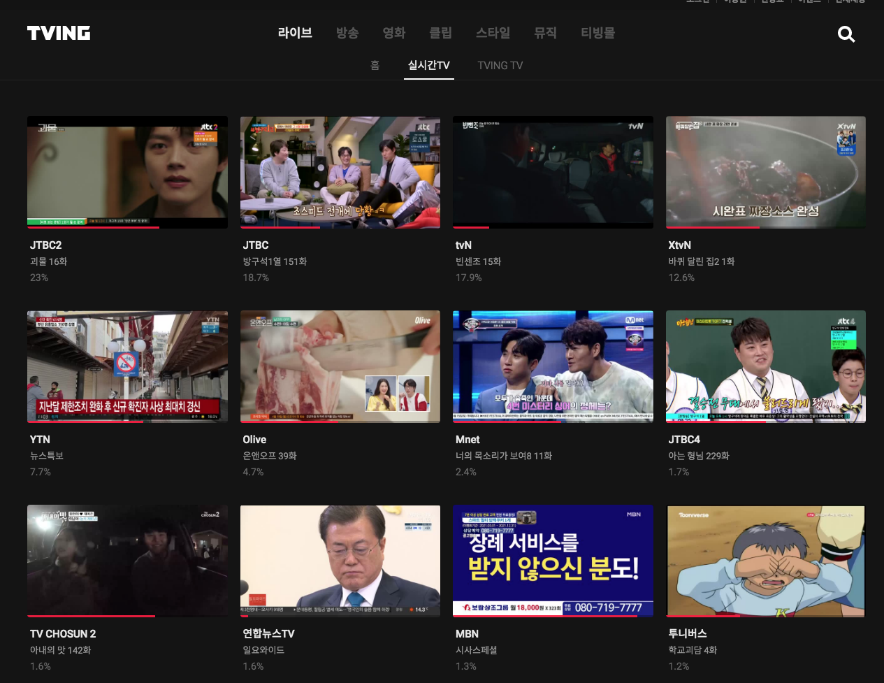 티빙 실시간 TV를 무료로 모바일, PC에서 자유롭게 볼 수 있습니다.