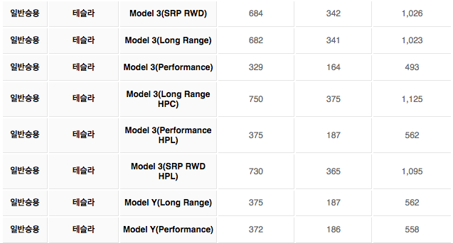 제가 구입한 테슬라 모델Y 롱레인지는 6,000만원이 넘어가는 가격이라 모든 보조금이 50%만 지원 됩니다. 테슬라 모델3와 비교해 보면 국비, 시비 다 절반 정도의 가격만 나오는 것을 알 수 있습니다. 저같은 경우는 총 562만원을 할인 받게 됩니다.