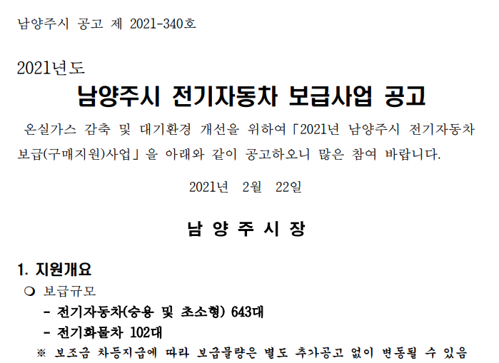 남양주시 전기차 보조금 규모