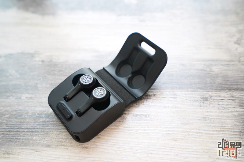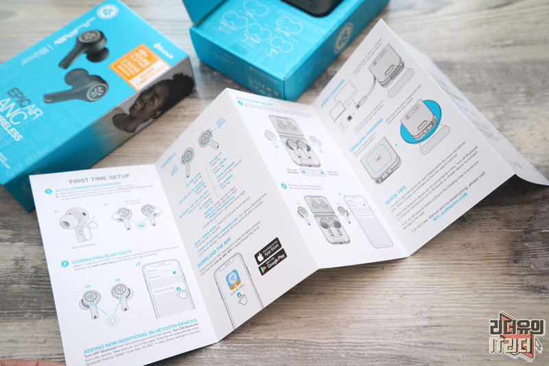 오픈을 하면 충전케이스에 들어 있는 JLAB EPIC 에어 ANC 이어폰을 만날 수 있습니다. 그리고 아래쪽에는